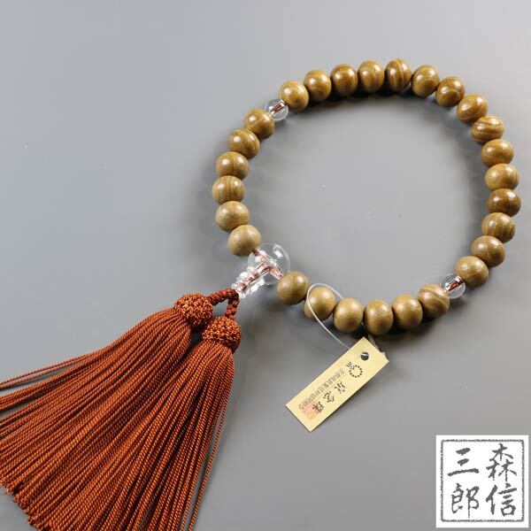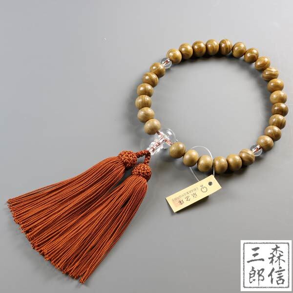 【メール便OK】男性用 数珠 桑 27玉Pハリ仕立 正絹房 (房色・茶)