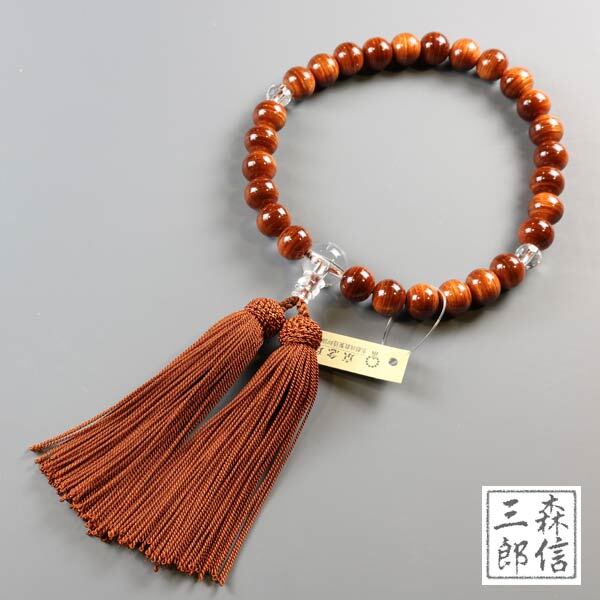 【メール便OK】男性用 数珠 寄木 27玉Pハリ仕立 正絹房 (房色・茶)