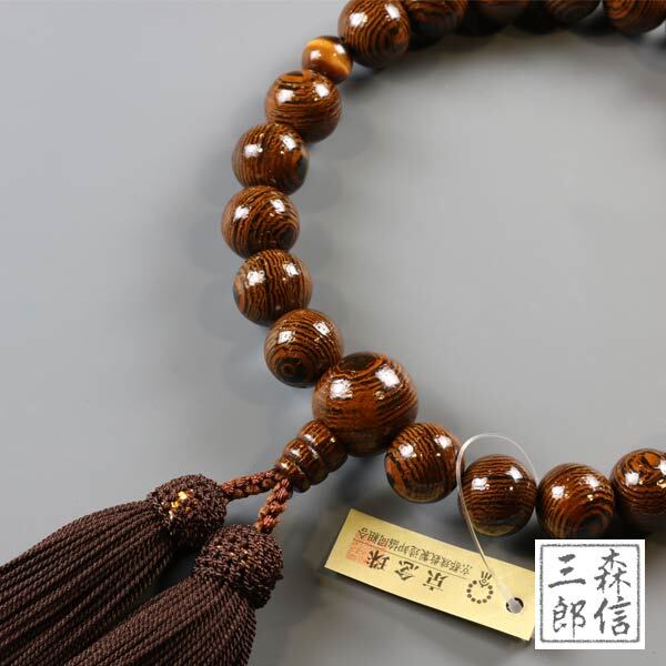 【メール便OK】男性用 数珠 鉄刀木(艶あり) 22玉 二天虎目石 正絹房