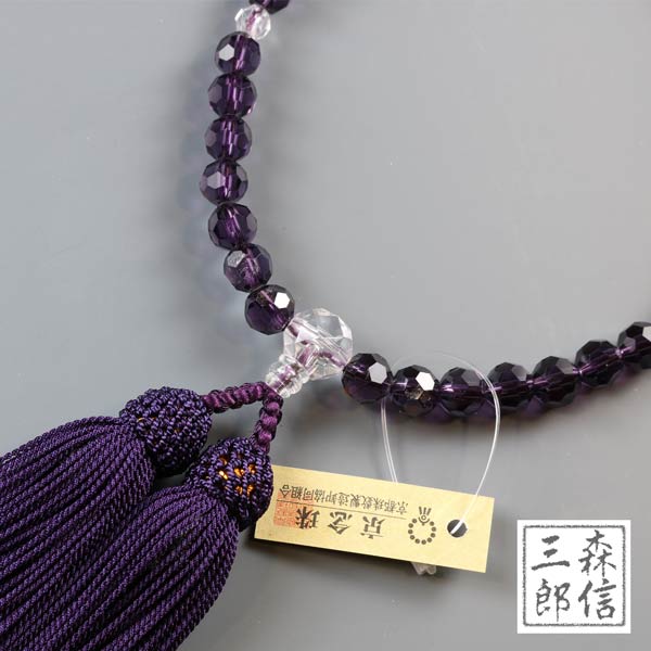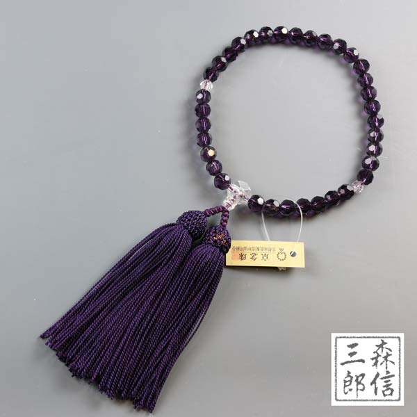 【メール便OK】女性用 数珠 特上紫ガラス切子 化繊房(房色・紫)