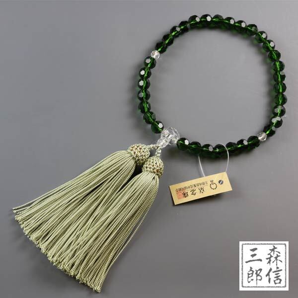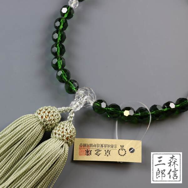 【メール便OK】女性用 数珠 特上緑ガラス切子 化繊房(房色・緑)