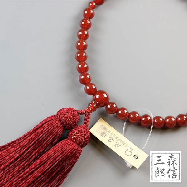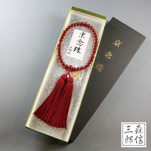 【メール便OK】女性用 赤メノウ 7mm 正絹房(房色・赤) (アゲート 京念珠 略式数珠 念誦 天然石 婦人用 女の子 パワーストーン 記念品 フォーマル 葬式 法要) | 京念珠 仏具 京都・森信三郎商舗