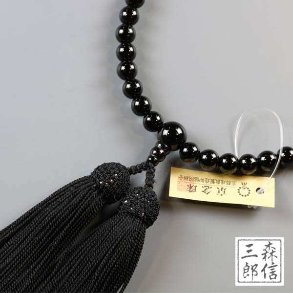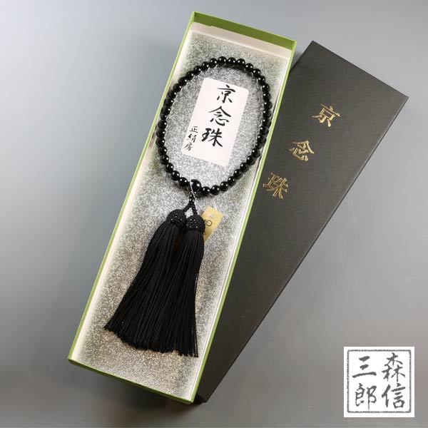【メール便OK】女性用 黒オニキス 7mm 正絹房(房色・黒) (京念珠 略式数珠 念誦 天然石 婦人用 女の子 パワーストーン 記念品 フォーマル 葬式 葬儀 法要) | 京念珠 仏具 京都・森信三郎商舗