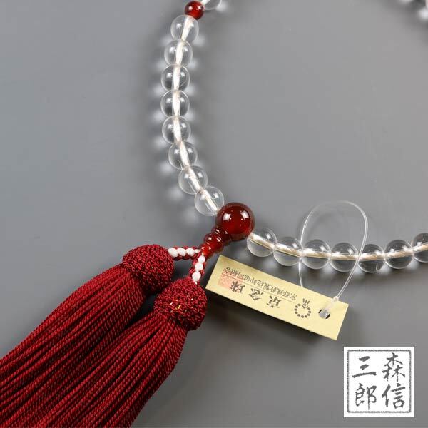 【メール便OK】女性用 数珠 本水晶 赤瑪瑙仕立て アゲート 正絹房(房色・赤) (京念珠 天然石 レッド めのう 略式数珠 念誦 婦人用 記念品 フォーマル あす楽) | 京念珠 仏具 京都・森信三郎商舗