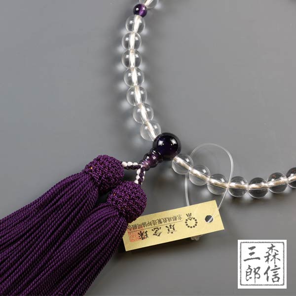【宅配便 送料無料】女性用 本水晶 紫水晶仕立て 正絹房(房色・紫) (京念珠 誕生日 アメジスト 略式数珠 念誦 紫色 婦人用 お祝い 記念品 フォーマル あす楽) | 京念珠 仏具 京都・森信三郎商舗