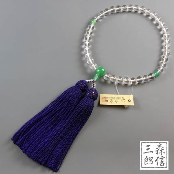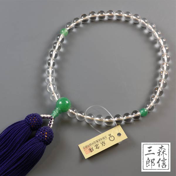 【メール便OK】女性用 数珠 本水晶 アベンチュリン仕立 正絹房(房色・紫) (京念珠 天然石 緑 グリーン 略式数珠 念誦 婦人用 記念品 フォーマル あす楽) | 京念珠 仏具 京都・森信三郎商舗