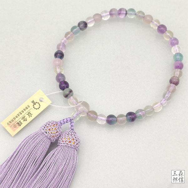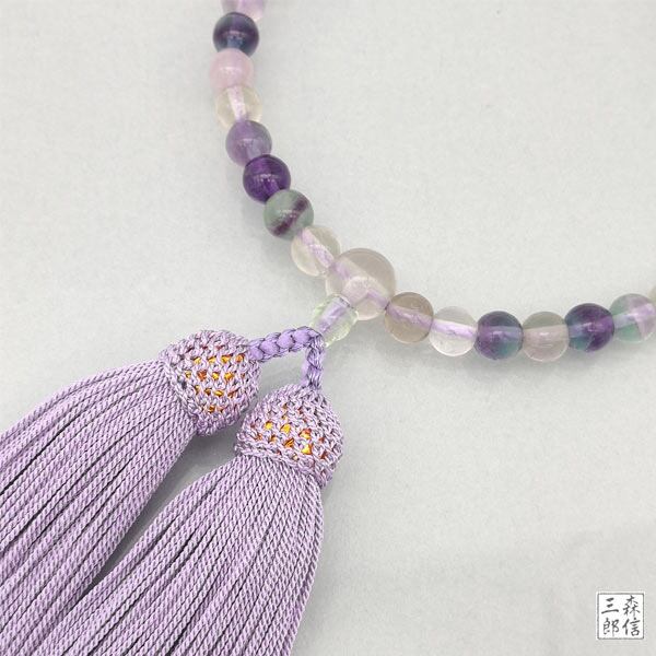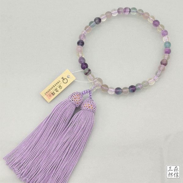 【宅配便送料無料】女性用 数珠 天然石京念珠 蛍石 フローライト 正絹房 (房色・紫)