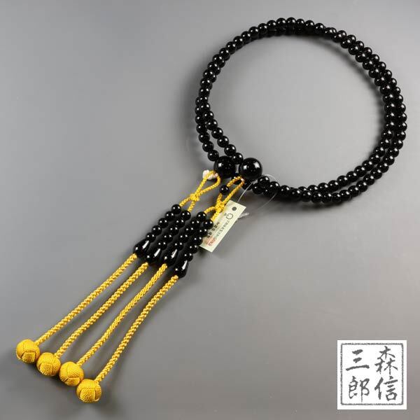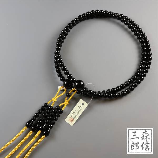 真言宗 男性用 二輪数珠 オニキス 尺二 正絹房 天然石数珠