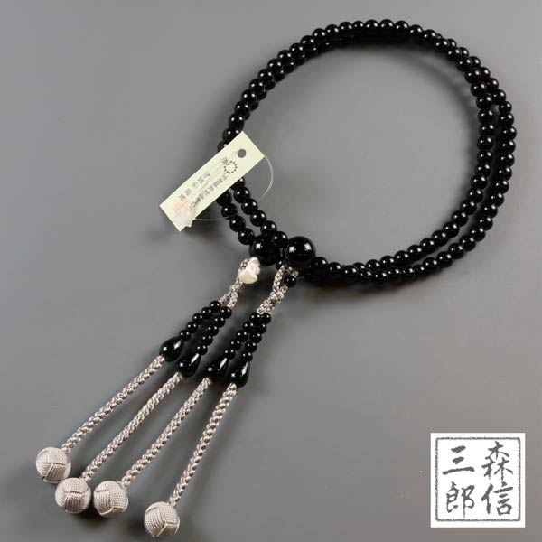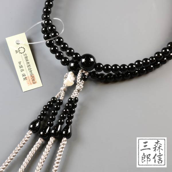 【宅配便 送料無料】真言宗 女性用 二輪数珠 オニキス 8寸 正絹房 本式数珠 正式