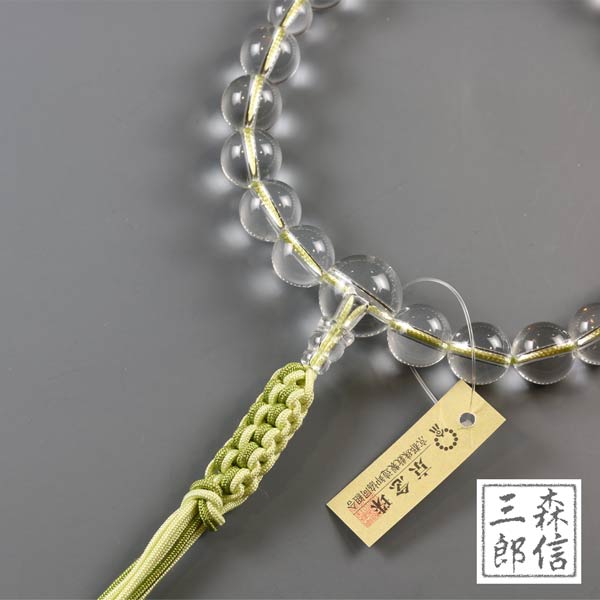 【宅配便送料無料】浄土真宗 男性用 数珠 本水晶 22玉 正絹紐房 (房色・黄緑) 本式数珠 正式 天然石(京念珠 ひも房 念誦 メンズ 門徒 本願寺 クオーツ あす楽) | 京念珠 仏具 京都・森信三郎商舗