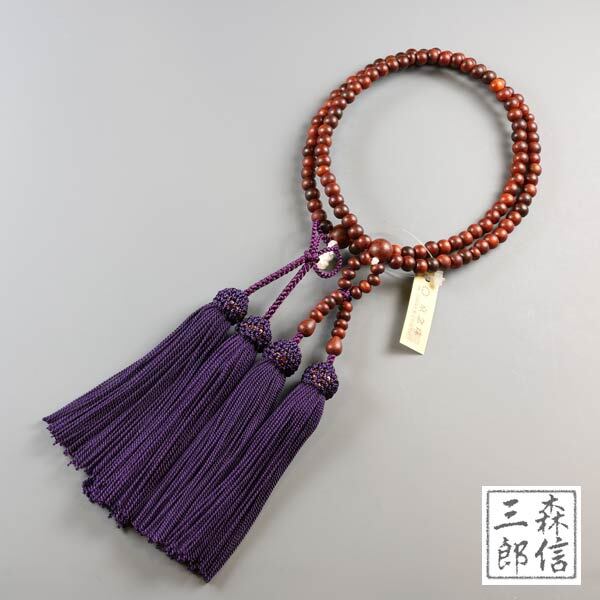 【宅配便送料無料】浄土真宗 女性用 数珠 紫檀 (したん) 正絹房 (房色・紫)本式数珠 正式数珠 (天然木 京念珠 念誦 天然石 木製 紫 二重 二輪 あす楽) | 京念珠 仏具 京都・森信三郎商舗