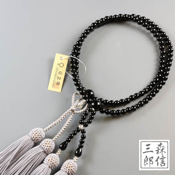 【宅配便 送料無料】浄土真宗 女性用 二輪数珠 オニキス 正絹房 天然石数珠