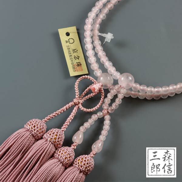 【送料無料】浄土真宗 女性用 二輪数珠 紅水晶 ローズクオーツ 正絹房 天然石数珠 ( 本式数珠 ピンク 京念珠 二重 念誦 婦人用 本願寺 門徒 記念品 あす楽) | 京念珠 仏具 京都・森信三郎商舗