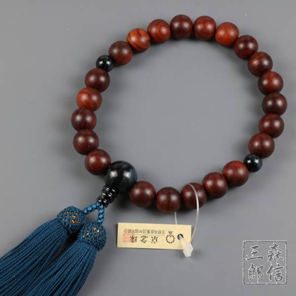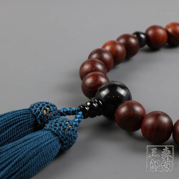 【メール便OK】男性用 数珠 紫檀 22玉 青虎目仕立 正絹房 (房色・紺)