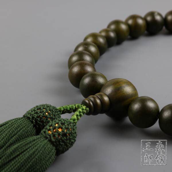 【メール便OK】男性用 数珠 緑壇 22玉 共仕立 正絹房 (房色・緑)