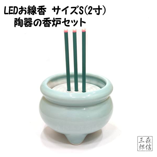 【送料無料】電池式 LED線香 陶器製香炉セット Sサイズ(2寸)(線香x1+陶器製香炉x1) (本物志向 電池式 電子線香 LEDキャンドル ペット モダン仏壇 3980) | 京念珠 仏具 京都・森信三郎商舗
