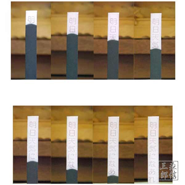 火をつけると灰がそのまま残ってそこに元気の出る言葉が浮き出てきます。