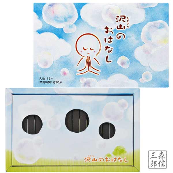 沢山のおはなし 16本入 約30分 16本の一本一本違う言葉が浮かび上がる線香です。進物用、ギフトにおすすめです!