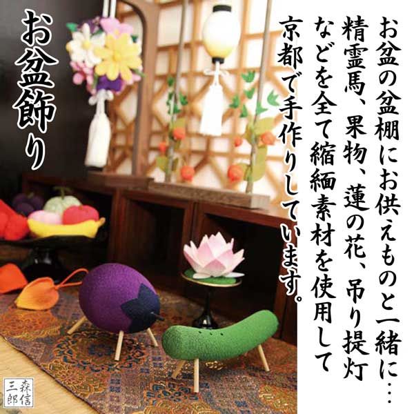 ちりめん盆飾り 【盆提灯・盆ちょうちん 】ちりめん精霊 馬 牛(大) ナス・キュウリ( 進物用 新盆 ギフト 御供 お盆用品 ミニサイズ かわいい 初盆 新盆 飾り) | 京念珠 仏具 京都・森信三郎商舗