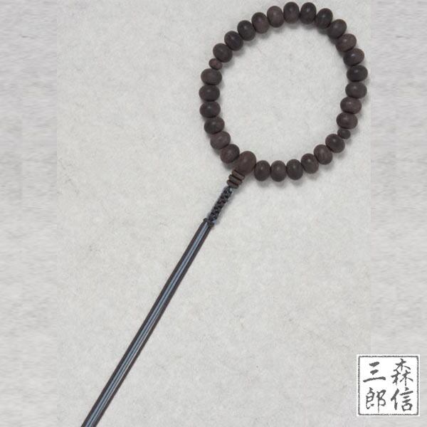 男性用 素挽き すびき黒檀 27玉 ミカン玉 片手 共仕立 正絹ヒモ房(房色・濃グレー/焦茶) (木製 紐房 京念珠 略式数珠 念誦 葬式 法要 京都 紳士服 メンズ) | 京念珠 仏具 京都・森信三郎商舗